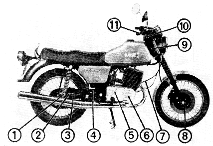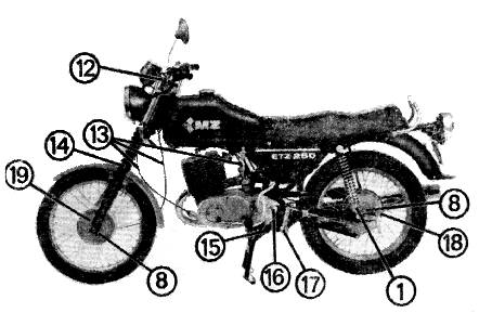 Bild 12. ETZ 250 linke Seite (Erklärung der Legende siehe Abschnitt 4.3.)