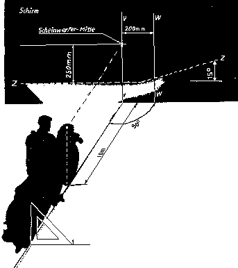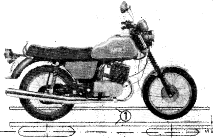 (S) Spalt zwischen Meßlatte und Vorderrad (etwa 1 cm)